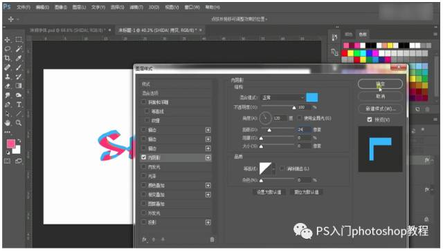 第三步:拷贝一个图层,填充为0,关掉颜色叠加,内阴影更改为蓝色。