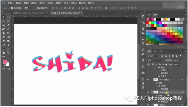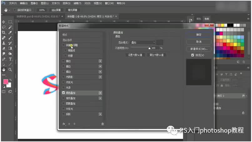 第二步:文字工具输入文本,调节好大小,选择颜色以及调整字间距,栅格化文字之后图层样式添加阴影和颜色叠加。