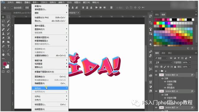 第五步:选中图层,点击图层--排列---反向,编组备注“背景”,两个组再编组,斜切。