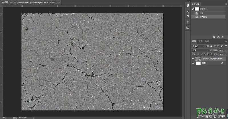 2.1 PS中新建一个文件,将有龟裂纹理的图片放置在背景层上,依据个人喜好来调整大小。