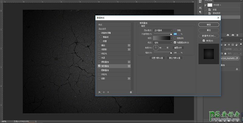2.2 点击龟裂纹理的图层,给它加上图层样式中的渐变叠加