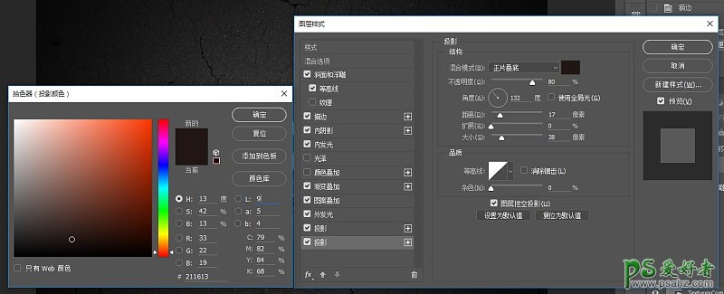 1.9 在投影中设置【阴影色值还是#211613】