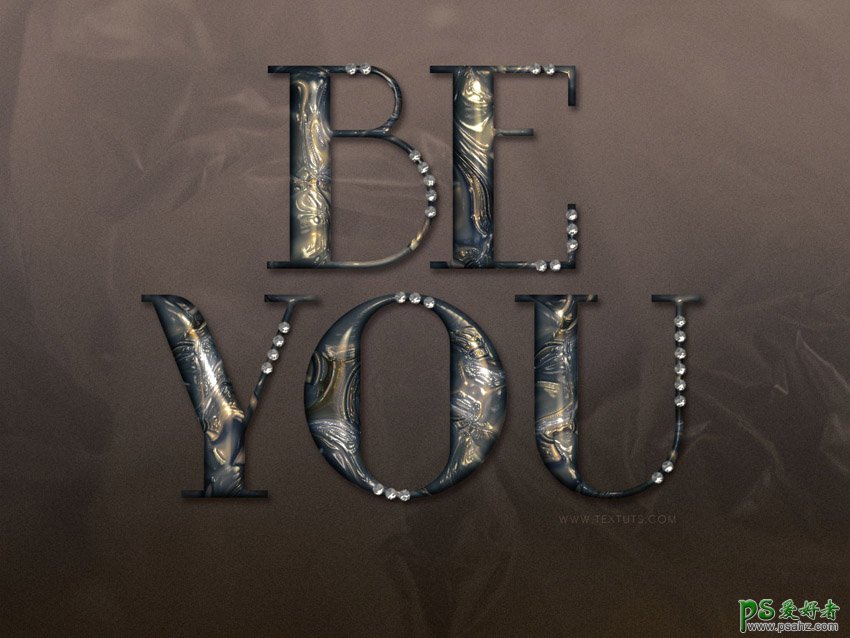 Photoshop设计个性创意风格的金属艺术字,镶有钻石的古典金属纹理字体,最终效果