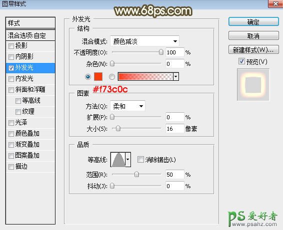 6、同样的方法给文字副本图层设置图层样式。 外发光:
