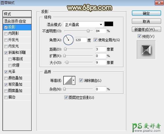 8、按Ctrl + J 把当前文字图层复制一层,清除图层样式后再重新设置。 投影: