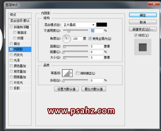 2.双击文本图层打开图层样式,选择内阴影,参数如下