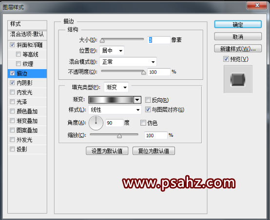 4. 描边设置。大小:3PX,位置:居中,填充选择线性,颜色如下。