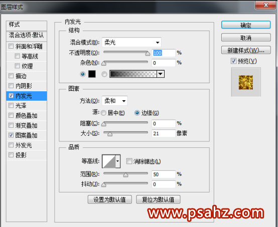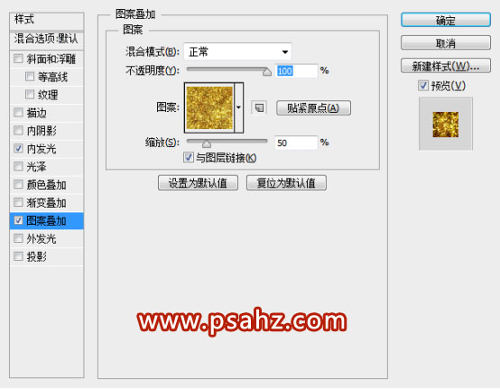9. 同上的方法给当前图层设置图层样式。参数如下: