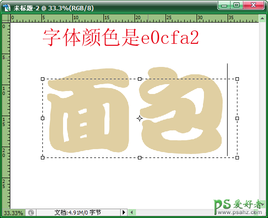 2、使用“文字工具”输入,“面包”两个字。(要用一些圆润的字体)