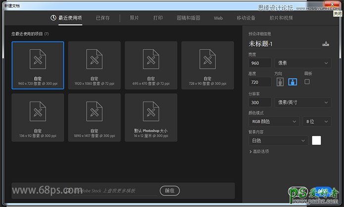 步骤1:打开Photoshop,创建一个新的960x720px文档。