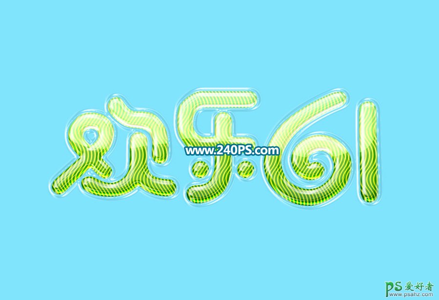 Ps制作绿色清新风格的六一个性文字,清爽剔透的六一节波纹字,波纹部分直接使用了波纹素材,然后用图层样式给文字边缘及中间区域增加高光,并用渐变叠加给文字加上想要的颜色,得到自己喜欢的效果。 最终效果