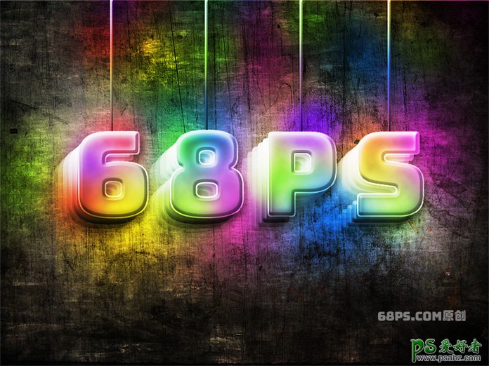 PS立体字制作教程:设计炫彩风格的立体字效,彩色3D立体质感的文字。在这个教学中我们将学习制作一幅非常酷的立体文字,操作并不繁杂,一起试试吧。我们将运用图层混杂、滤镜、图像调剂来完成制作,看下最终效果图: