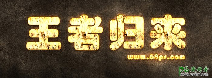 Photoshop制作个性的作旧效果金属字体,王者归来颓废金属字教程,这款效果字制作非常简单,只用图层样式给文字加上金属描边及一些简单的浮雕效果即可.