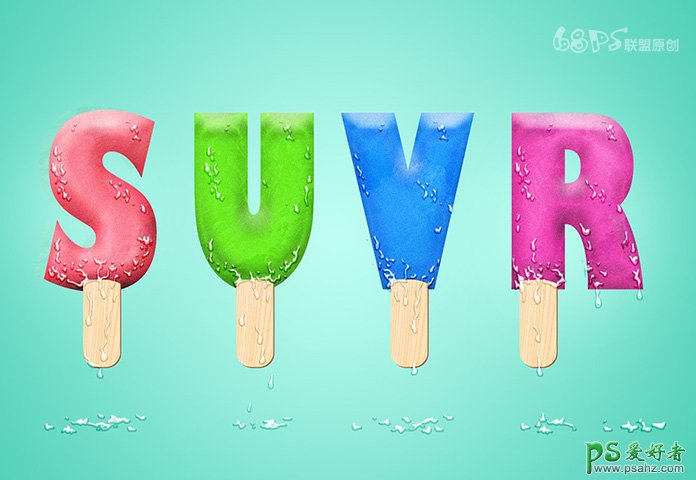 Photoshop设计可爱的冰淇淋字体,彩色质感风格的冰淇淋艺术字。炎热的夏天到了,让我们来凉爽下吧!今天我会告诉你如何制作冰淇淋效果的文字,我们将运用图层样式,画笔来实现。让我们来试试吧!先看下最终效果图: