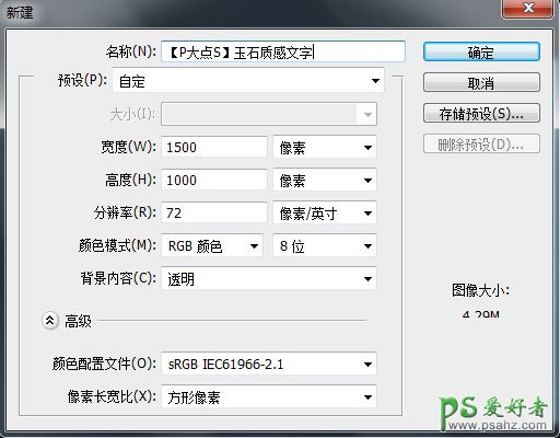 新建文档,我用的是1500X1000像素大小,大家随意。
