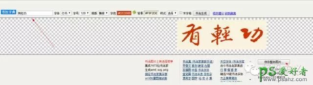 很多网站都有毛笔字体在线生成的功能(百度毛笔字在线生成即可找到),我们需要选用一个合适的字形作为基础,我选择的是一个比较浓墨重彩的字形,整体运势苍劲有力,锋藏而不露,符合有轻功的气质。另存一下 拖拽到ps里面编辑