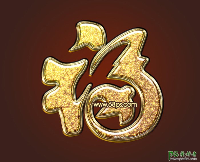 PS字效教程:利用图层样式及纹理素材制作金色质感的福字,立体质感的金字,字效中主要运用图层样式给文字加上金属描边及一些简单的浮雕。