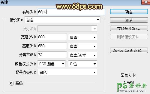 1、打开PS软件,按Ctrl + N 新建画布,尺寸如下。