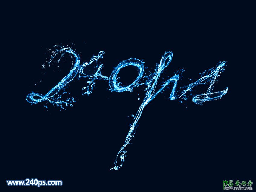 PS个性字效教程:学习制作漂亮的冰水艺术字,动感喷溅水珠字效,水珠字制作非常简单,直接截取水珠素材,按照文字的轮廓进行变形融合,文字较为复杂的部分可以多复制几段进行变形处理;大致完成后,用渐变映射来上色。 最终效果