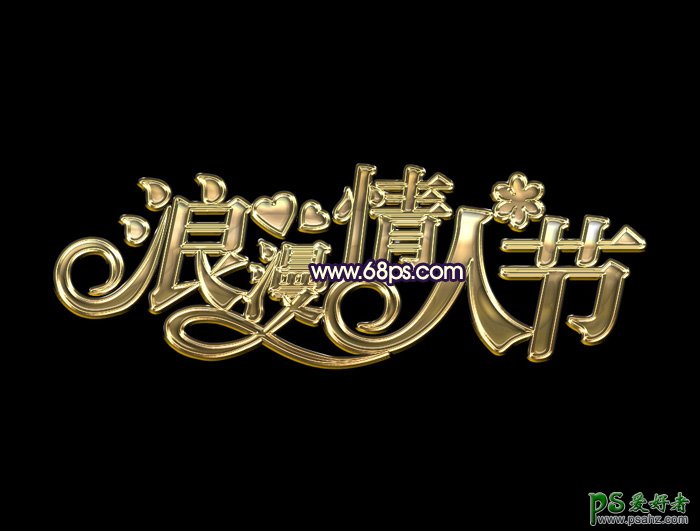 PS立体艺术字制作教程:设计散发着金属光泽的情人节金属字体,情人节艺术字,情人节立体字,情人节创意字体设计教程,文字直接使用了素材;制作的时候用多层图层样式分别给文字加上金属渐变、描边、浮雕等效果。 最终效果