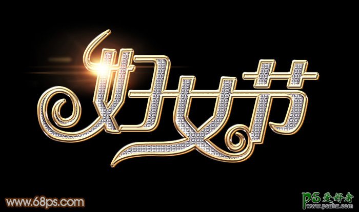 学习用PS图层样式快速制作华丽的钻石金边字体,镶钻带金边的立体艺术字。三八妇女节文字特效制作教程,钻石字制作并不复杂,由钻石纹理和金属描边两部分构成。金属描边非常简单,用图层样式配合渐变就可以完成;喜欢的朋友们跟着做一下吧!