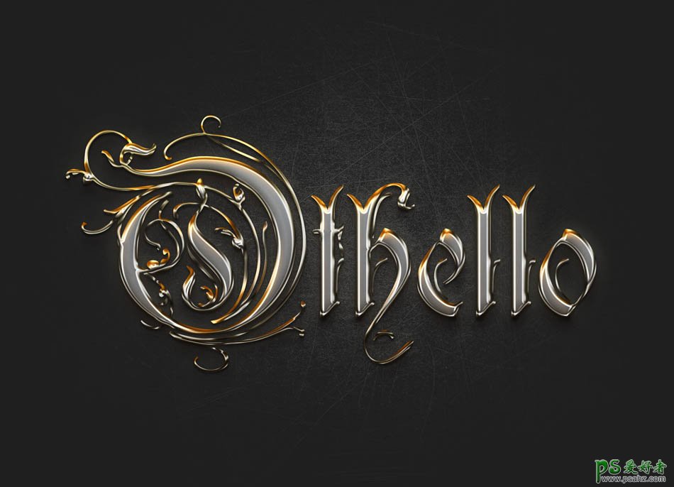 Ps文字特效教程:学习制作时尚大气的镏金艺术字,花纹艺术字体,作者通过各种图层样式的配合,做出逼真的金属质感,大家都试试吧。教程中未注明色值的默认黑色或者白色。喜欢的朋友们好好学习一下吧!效果图