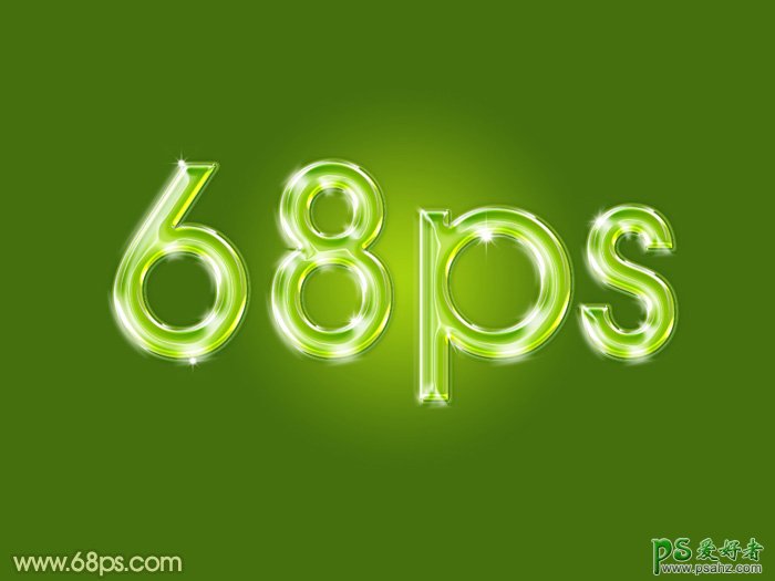 Photshop文字特效教程:制作一款闪亮效果的绿色水晶字,玻璃字体,玻璃字制作的时候,我们把图层填充改为零,然后用图层样式多给文字边缘和中间区域增加高光,底部再增加一点投影,增加层次感即可。 最终效果