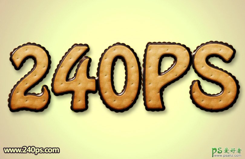 Photoshop制作一款创意风格的香脆质感饼干字,个性巧克力饼干字体,文字由两部分构成:饼干和巧克力边缘。饼干部分直接使用了饼干图案,加上一些图层样式做出质感;巧克力部分用小点描边路径,同样用图层样式加上质感和投影,得到想要的效果。 最终效果