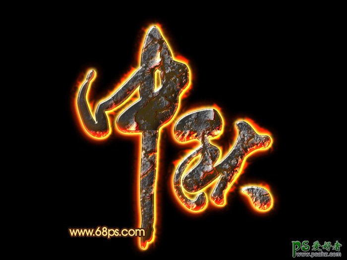 Photoshop制作边缘着火的中秋节艺术字,漂亮红火的中秋火焰字体制作教程实例,效果字由边缘的火焰和中间的纹理构成。制作的时候可以把文字多复制几层,然后用图层样式逐层增加火焰效果;顶部文字再增加一些岩浆纹理和浮雕效果即可。 最终效果
