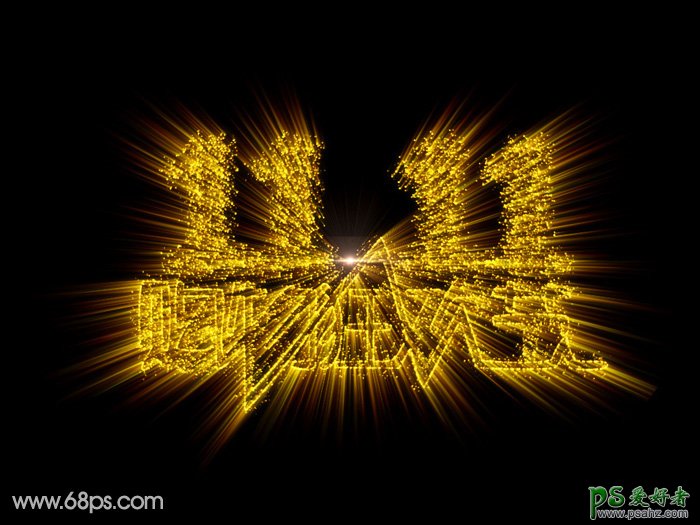 PS光芒字制作教程:设计一款金光闪闪的双十一放射粒子字-放射光芒字体,这款字体非常漂亮,掌握之后我们可以在设计促销海报的时候使用这样的字效来装饰画面,喜欢朋友们好好学习一下吧!
