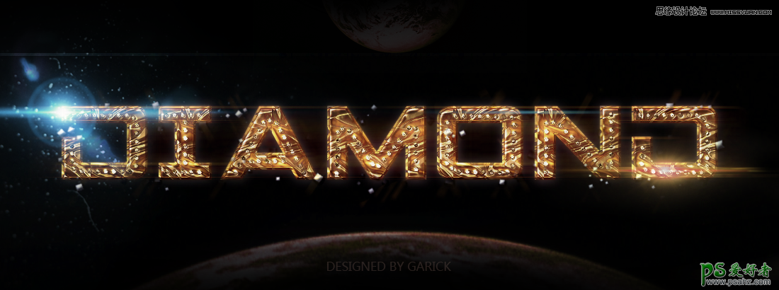 PS字体特效制作教程:给普通的文字素材制作成金属质感的纹理艺术字效果,教程中会通过使用图层样式、滤镜等工具,打造出一款炫丽科幻的艺术字体。制作过程并不复杂,我们可以从中学习到很多字体设计方面的技巧,喜欢的朋友们动手学习一下吧!先来看看最终效果: