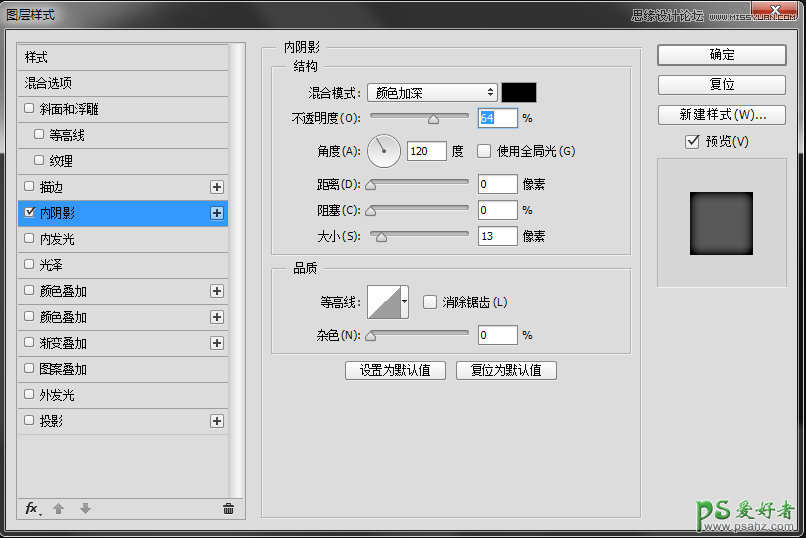 1-2、给文字加个内阴影,设置如下: