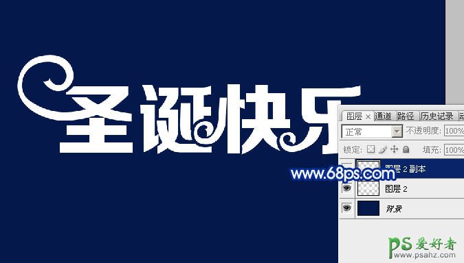 3、按Ctrl + J 把文字图层复制一层,把副本图层隐藏,如下图。