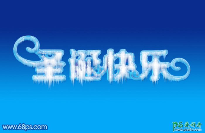 PS字体特效设计教程:制作一例晶莹剔透的圣诞节冰雪字体-圣诞快乐冰雪字,教程过程有点复杂。思路:先用多组滤镜做出类似积雪及冰凌的纹理;然后用图层样式增加颜色及投影等做出初步的效果;最后再对细节部分修饰一下即可完成,喜欢的朋友们动手练习一下吧!