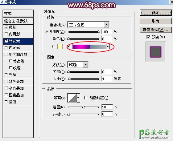 外发光:混合模式改为“正片叠底”,然后选区渐变选项,点击渐变区域设置渐变色,如图7。其它设置如图6。