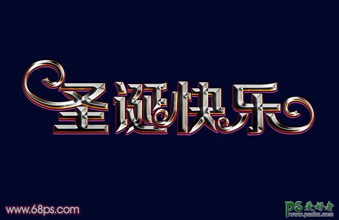 今天我们学习利用photoshop图层样式制作华丽大气的圣诞节金属字,金属立体字体,用图层样式制作金属字是非常快的。可以把文字多复制几层,图层填充改为零,然后设置不同的斜面和浮雕、等高线、光泽、渐变叠加等样式增加文字的质感即可。 最终效果