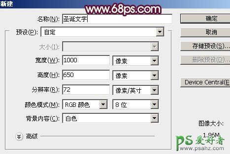 1、打开PS,新建一个1000 * 650像素,分辨率为72的画布,设置如下图。