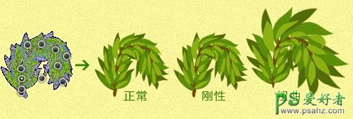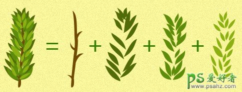 使用钢笔工具画出如下图的常青树枝。下图是我们用钢笔画好的常青树枝,我们往下的所有操作将基于此树枝来变形。