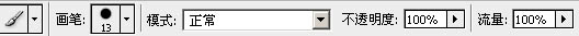 8、在属性面板把画笔的不透明度及流量都设置为:100%,如下图。
