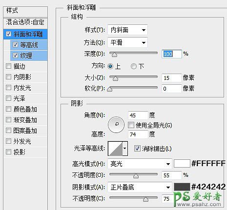 7、下面,我们设置P大点S拷贝图层的图层样式。