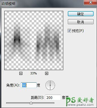 12、对这个黑色的文字图层执行动感模糊滤镜,设置如下图。