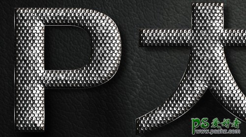 PS金属字制作教程:设计一款个性质感的银色鳞片金属字体,效果字基本上都是用图层样式来完成。思路:先铺好背景,然后输入想要的文字或图形;把文字多复制几层;分别给各文字图层增加不同的样式,增加文字的纹理和质感,然后改变副本图层填充度即可得到不错效果。 最终效果