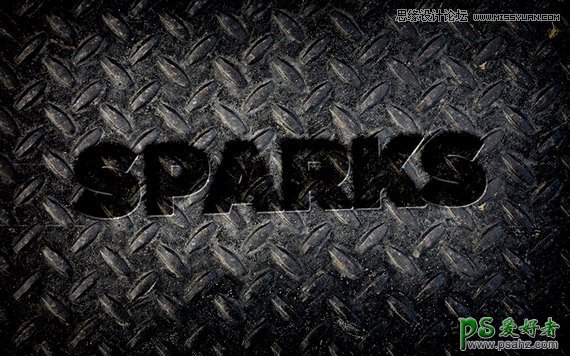 PS金属字制作教程:设计一款切割火花效果的质感金属字 金属艺术字,本教程主要运用Ps图层样式和笔刷混合,你可以创建一个逼真的动态拍摄火花完成等离子切割的文字效果。字体非常漂亮大气,推荐给大家好好练习一下。先看看效果图 步骤1 一个黑色的背景