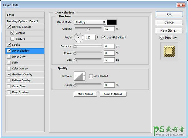 点击应用内阴影。设置不透明度50%、距离0像素、大小1像素。