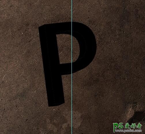 打造阴影。将之前AI中复制过来的字母文件栅格化,ctrl+U,亮度调成最暗,得到一个黑色的字母P,这个是做阴影的基本元素。