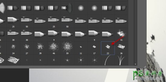 给岩石素材添加蒙版,再使用画笔工具擦拭,选择粉笔擦橡皮擦花尖形状,如下所示: