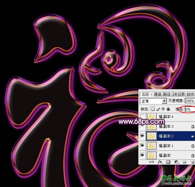 12、按Ctrl + J 把当前图层复制一层,得到“福副本3”图层,同样的方法清除图层样式。