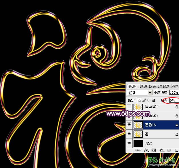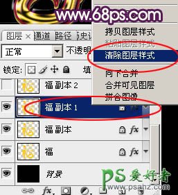 6、按Ctrl + J 把当前图层复制一层,得到“福 副本1”图层,然后在图层面板缩略图区域右键选择“清除图层样式”。