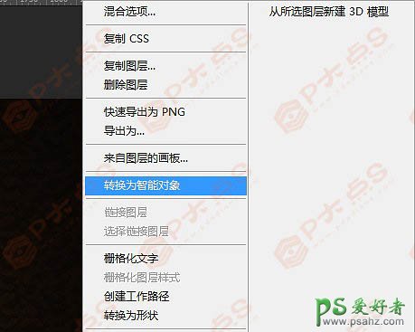 5、文字图层上右键,转换成智能对象。
