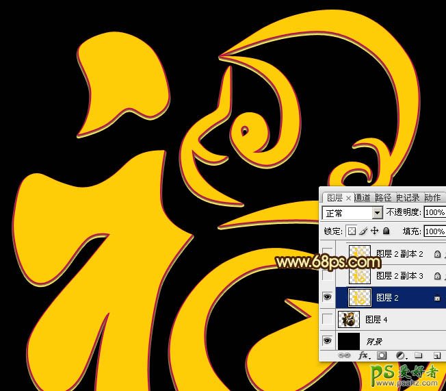 PS金属立体字制作教程:设计金黄色华丽效果的三维立体铬金福字,教程重点是表面字部分的制作,用到了多个文字图层及多组图层样式;每一个图层增加不同的效果,叠加到一起实现最终的字效,这种字我们在设计节日海报,宣传化的时候常用得到,喜欢的朋友们好好